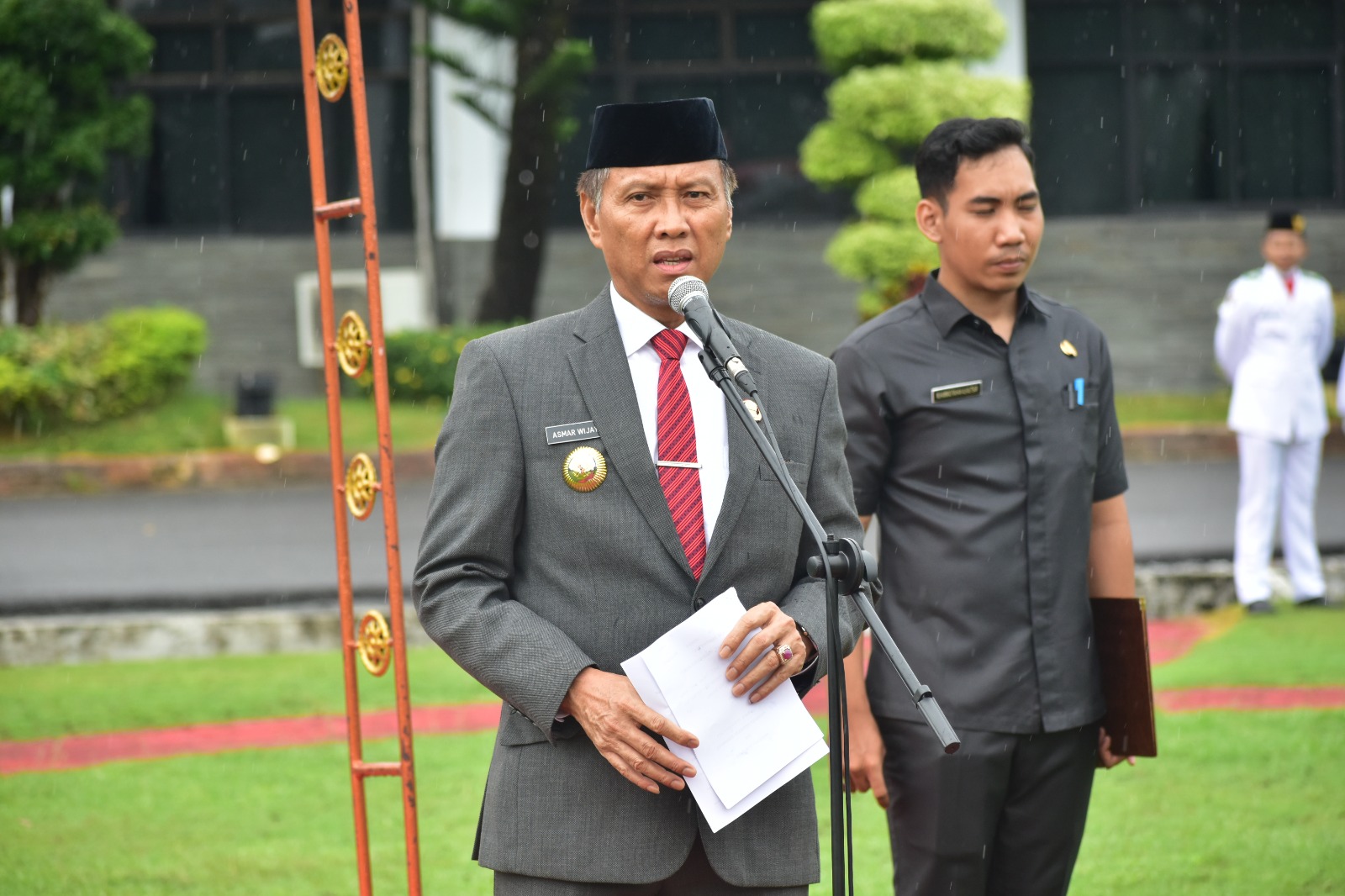 Upacara yang berlangsung khidmat ini dihadiri oleh jajaran Forkopimda, Penjabat Sekretaris Daerah (Sekda), para Kepala Organisasi Perangkat Daerah (OPD), Aparatur Sipil Negara (ASN), para guru, dan siswa-siswi dari berbagai sekolah di Kecamatan Kayuagung.